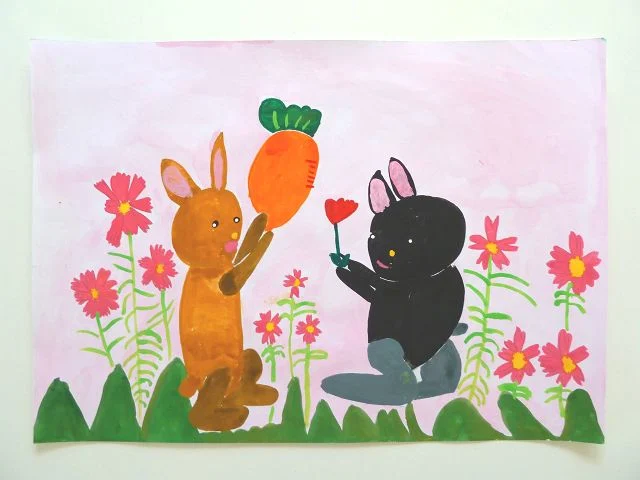 この生徒さんだけでなく、同じものを繰り返し描く生徒さんは少なくありません。「ライオン行く、ライオン行く」と言って教室に来る生徒さんや、「ロケット、ロケット」と言って通ってくる生徒さんもいるほどです。「うさぎ」も「ライオン」も「ロケット」も造形リトミック:歌唱造形の中のテーマです。
